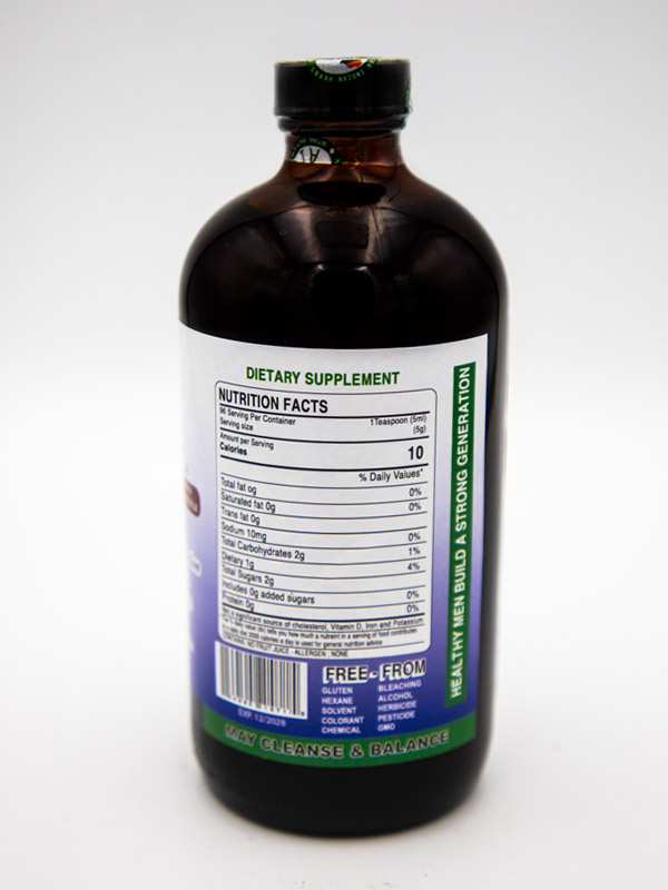 Saw palmetto, Pygeum, Avena saltiva, Mauby Bark, Muira Puama, Epilobium, Filtered water, Seamoss, Parsely, Rosemarry, Sage, Aloe Vera juice, Mahogany, Garlic, Ginger, Cranberry, Cinnamon, Cascara, Echinicea, Angustifolia root, Golden road, Nettle, (Urtica Dinica) Black seed oil, Pumpkin seed oil, Organic Coriander, Turmeric root, Organic Dandelion root, Bitter melon, Fenugreek, Organic Curry leaf, Neem leaf, Ginseng root Powder, Astragalus root Powder, Alfalfa, Gentian, Burdock root extract, Ginger and Organic Apple Cider Vinegar.